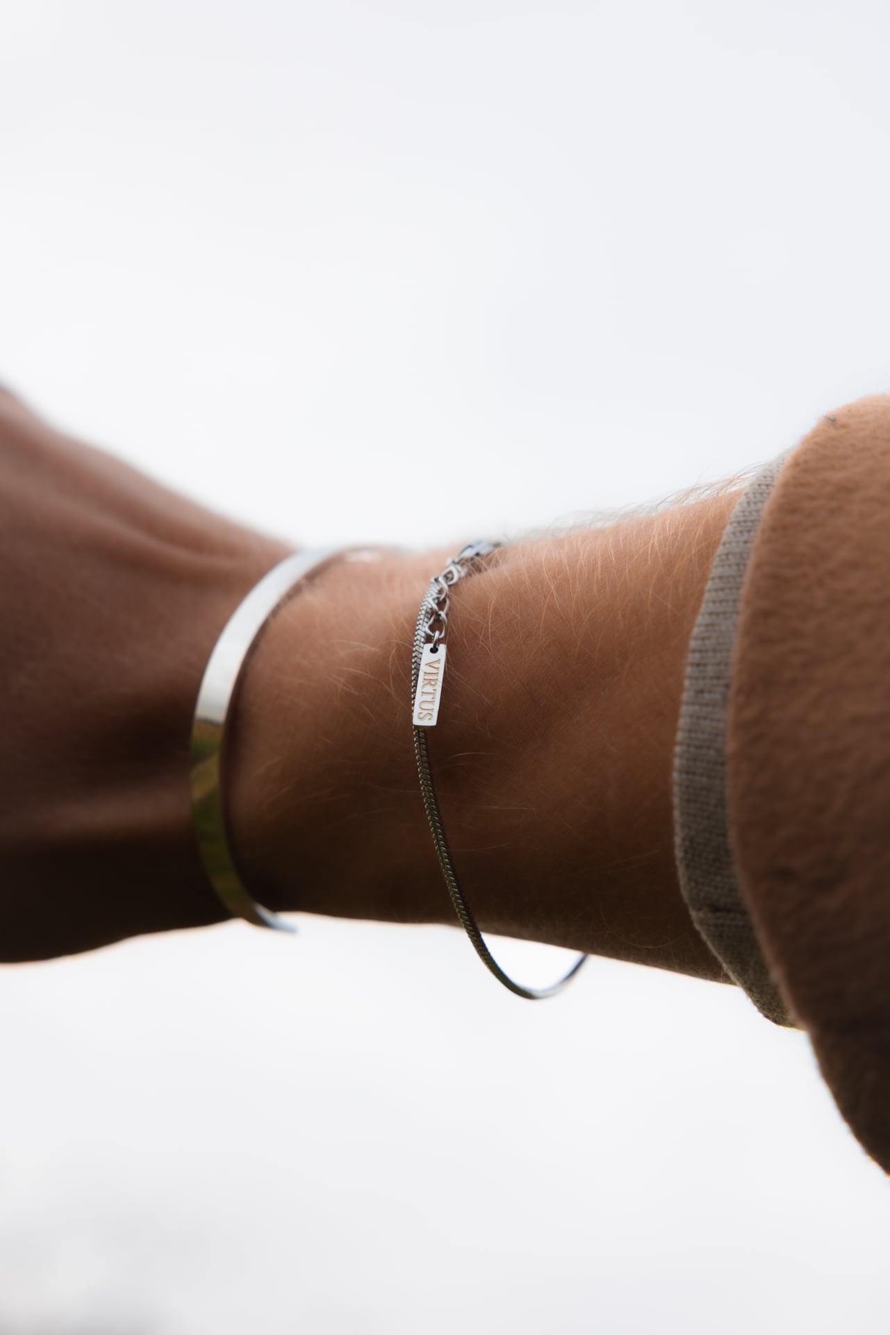 Det diskrete VIRTUS-logo graveret i Basiliscus kæde i pendanten og på indersiden af vores Directus Cuff, tilføjer et minimalistisk touch, som symboliserer styrke, selvtillid og moderne elegance.Tilgængelig i både sølv og 18K guldbelagt finish.